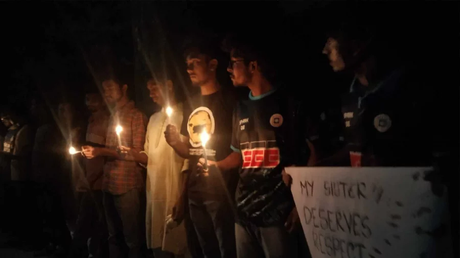 শুক্রবার (১৬ আগস্ট) সন্ধ্যা ৭টায় বৈষম্য বিরোধী ছাত্র আন্দোলনের উদ্যোগে প্যারিস রোডে মোমবাতি প্রজ্বলের মাধ্যমে এ কর্মসূচি পালন করা হয়। এসময় এক শিক্ষার্থীকে কাফনের কাপড় পড়ে মৌমিতা সেজে অভিনয় করতে দেখা যায়।